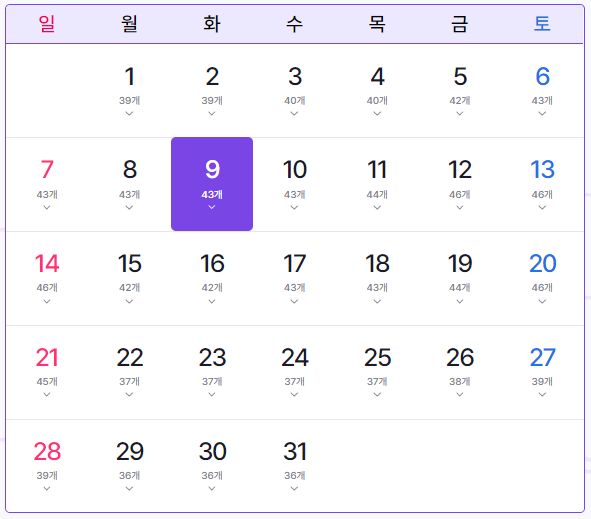지역별 세부 축제 현황은 아래의 달력에서 확인이 가능합니다.