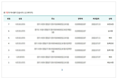 ⑨ [마이페이지 ▶나의 등록현황]으로 이동하면 가맹점 신청현황을 파악할 수 있으며 신청 후 7일이내에 시, 군에서 자격심사 후 결정 및 통지를 안내받습니다.