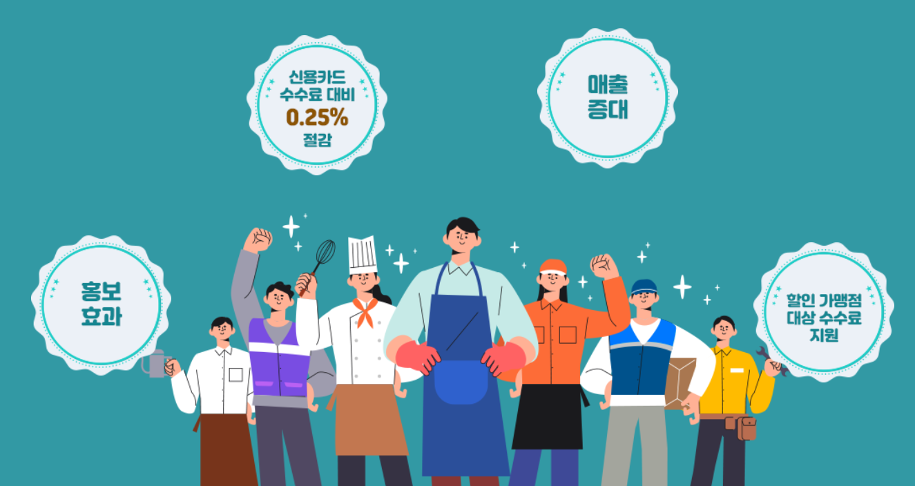 단, 소상공인 경쟁력 강화를 위해 백화점, 대형마트, 일부 제외업종 및 일정 기준 매출액 이상의 가맹점은 사용이 제한될 수도 있습니다.