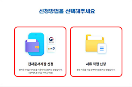 ③ 전자문서지갑 신청 또는 서류 직접 신청을 클릭합니다.