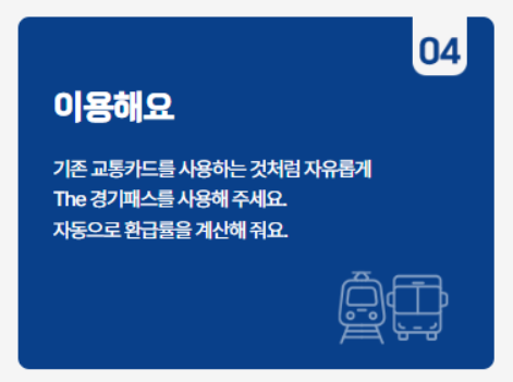 ④ 기존의 교통카드와 마찬가지로 The 경기패스를 자유롭게 사용하시면 자동으로 환급률을 계산해서 환급해 줍니다.