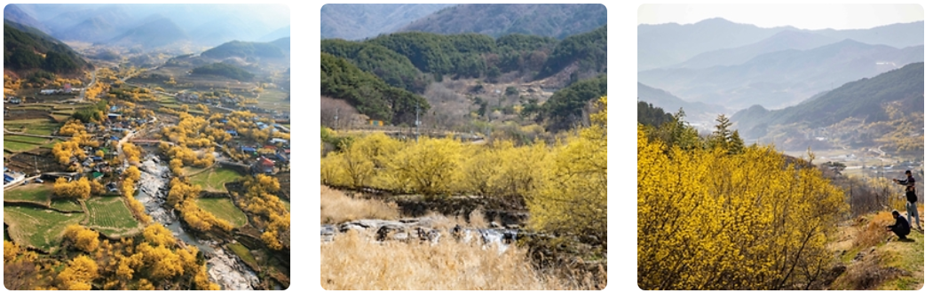 매년 산수유 꽃축제가 열리는 전국에서 제일가는 산수유 재배단지인 상위 마을에서는 길놀이로 시작해 산수유떡과 순두부 만들기, 연날리기, 산수유 강좌 및 노래자랑 등의 다양한 행사와 함께 온통 노랗게 꽃망울을 터뜨린 아름다운 산수유 꽃을 보기 위해 몰려드는 상춘객들을 맞이하기에 무척이나 분주합니다.