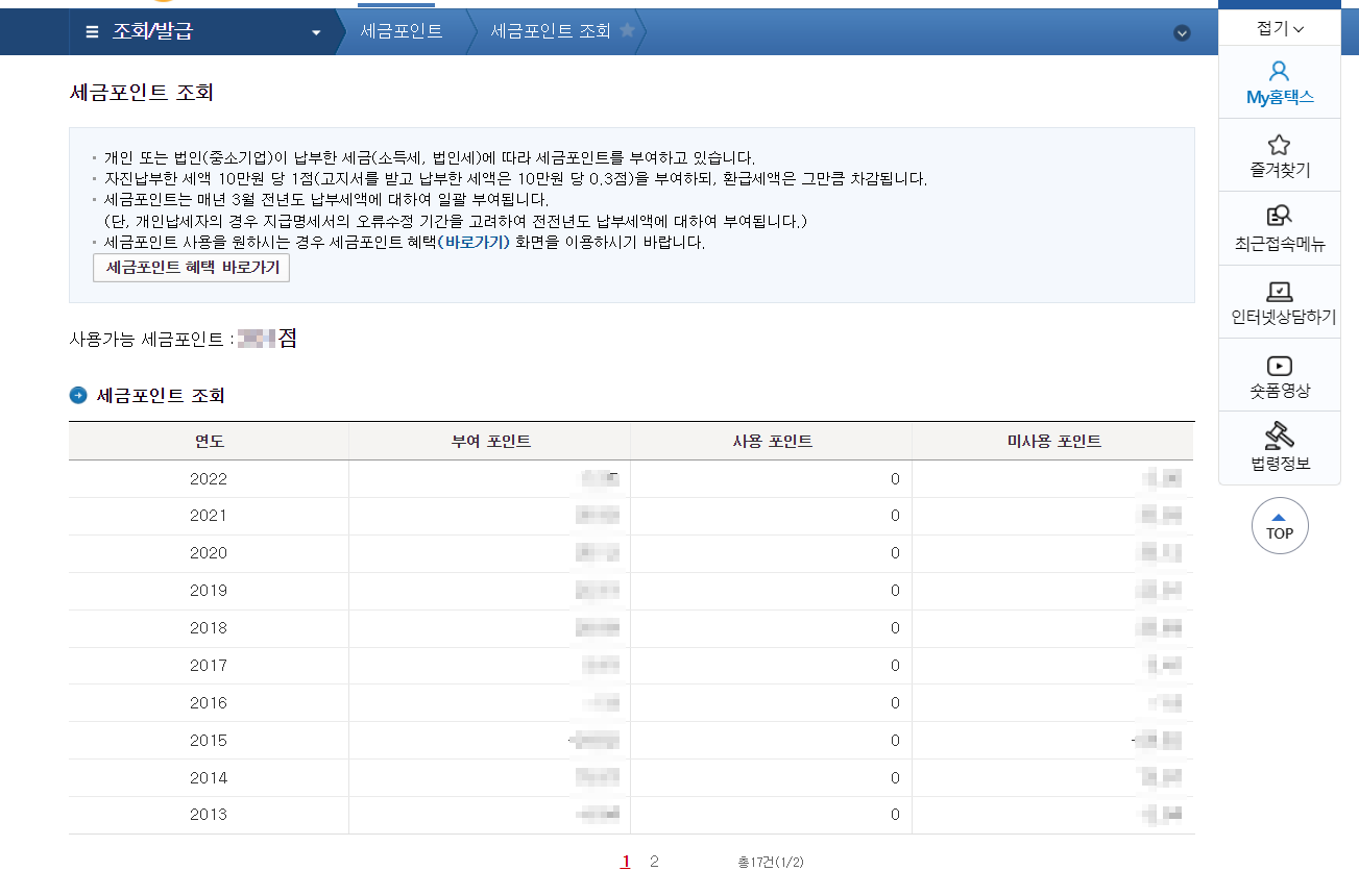 내가 내는 세금에 대한 포인트가 적립된다는 것을 아는 사람은 많지 않을 것 같습니다.