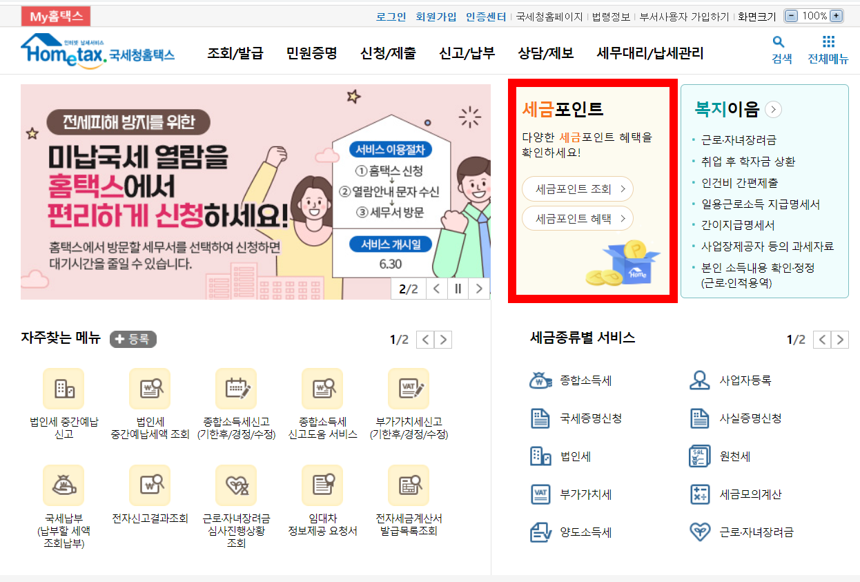 세금포인트를 확인하셨다면 사용처를 알아야 사용할 수 있어서 세부적인 내용을 검색해 보았습니다.