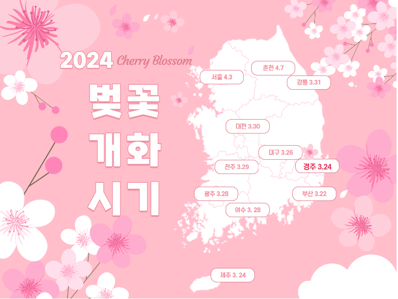 아래의 실시간 봄꽃 개화현황을 통한 지역별 봄꽃의 개화상태를 출발 전 미리 확인하시기 바랍니다.