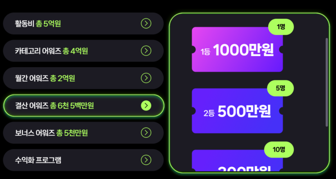 ④ 결산 어워즈 총 6,500만 원 지원