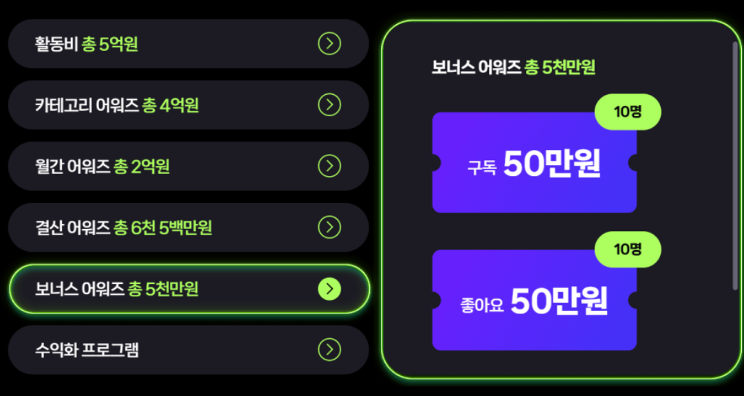 ⑤ 보너스 어워즈 총 5,000만 원 지원