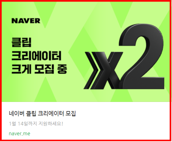 네이버 클립은 2023년 11월 숏폼 콘텐츠 시장을 겨냥한 모바일 애플리케이션(앱)을 개편하면서 유튜브, 인스타그램, 틱톡 등의 해외 플랫폼들이 선점한 숏폼 콘텐츠 시장에 대한 반격에 나서면서 신규 클립 크리에이터 모집을 진행하였습니다.