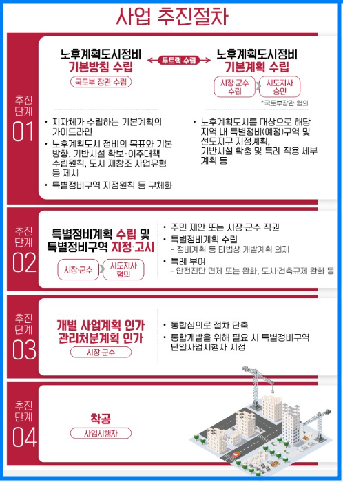 노후 계획도시 특별법의 사업 추진절차는 아래와 같습니다.