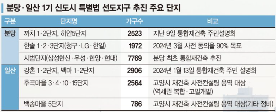 아래의 지역은 1기 신도시 선도지구 추진 예상 주요 단지 현황으로 선도지구 1기 신도시에서 가장 먼저 정비사업을 추진할 수 있는 지역입니다.