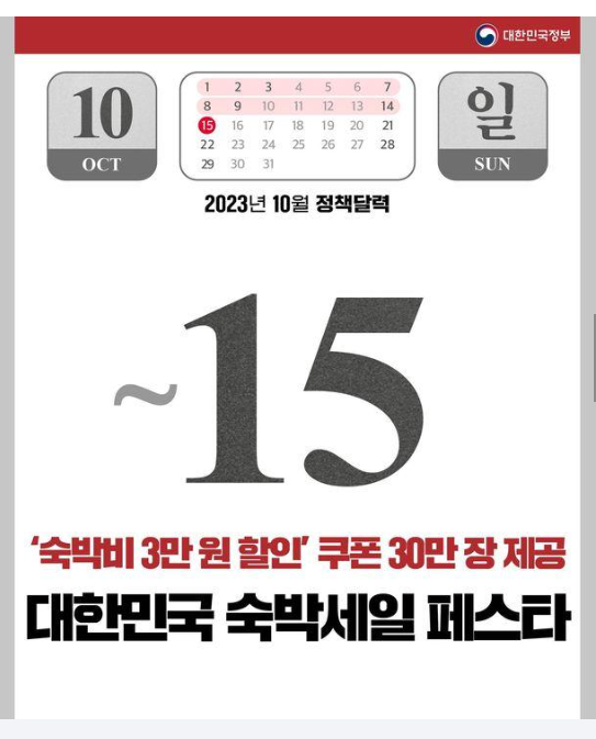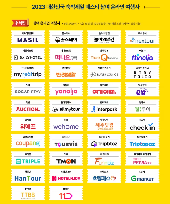 아울러 10월 27일(금)부터 11월 24일(금)까지 대한민국 숙박세일 페스타 전국편이 진행될 예정이라고 하니 기대가 큽니다.
