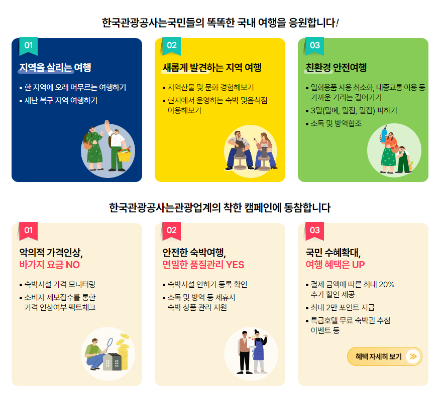또한 관광업계의 악의적 가격인상이나 바가지요금을 모니터링하며 안전한 숙박여행을 위한 착한 캠페인에 동참합니다.