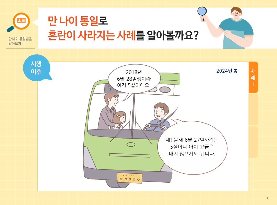 기존의 한국식 나이 7살 아이의 버스요금 환불과 관련하여 혼란을 가져왔던 사례입니다.