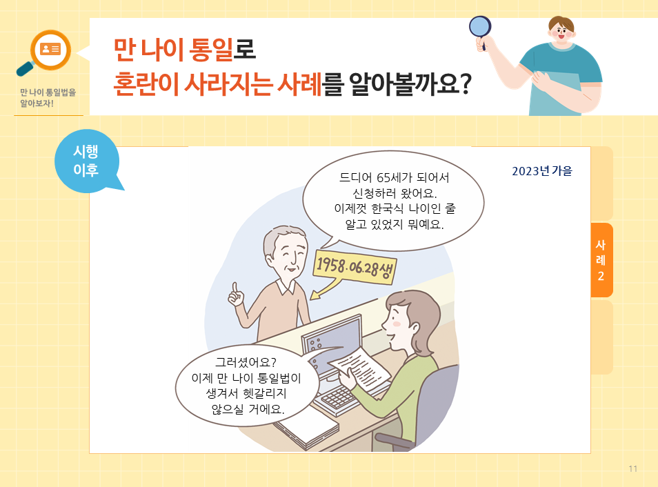 ▶만 나이 통일법이 시행되면 일상에서 나이로 인한 혼란이 사라집니다.