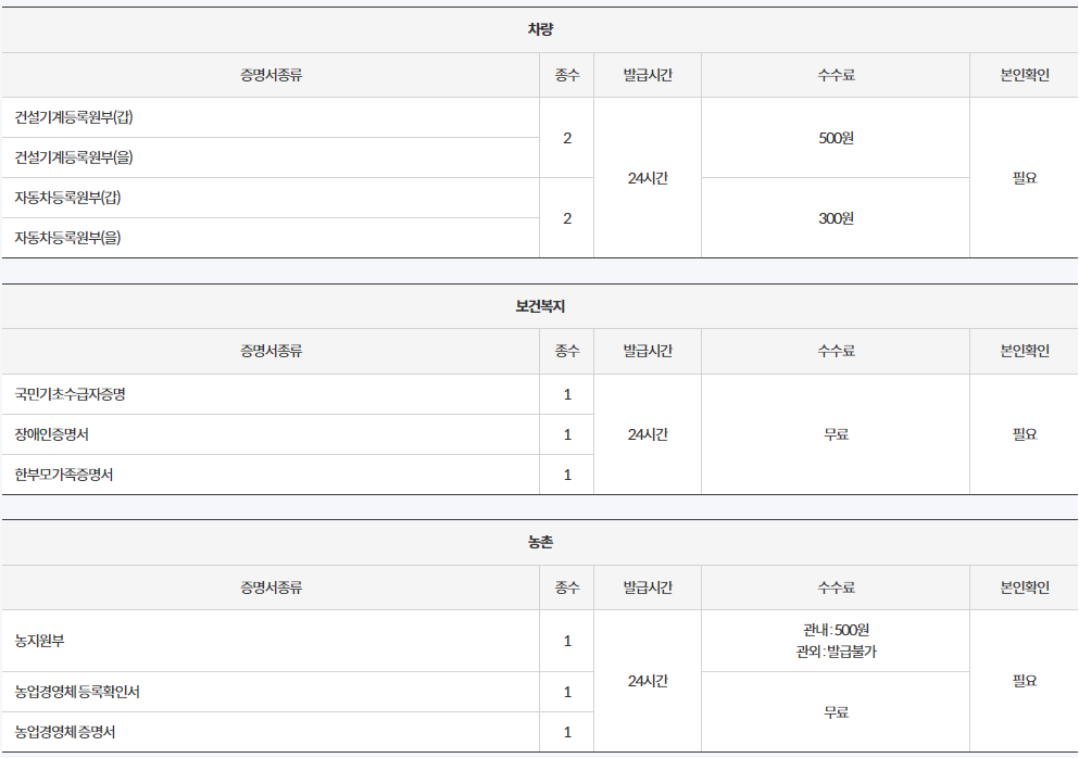 무인민원발급기 위치 및 증명서 종류