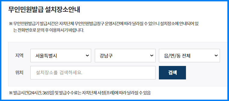 무인민원발급기 설치장소