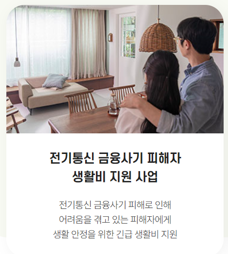 전기통신 금융사기 피해자의 생활비 지원사업을 통해 생활 안정을 위한 긴급 생활비를 최대 300만 원까지 지원합니다.