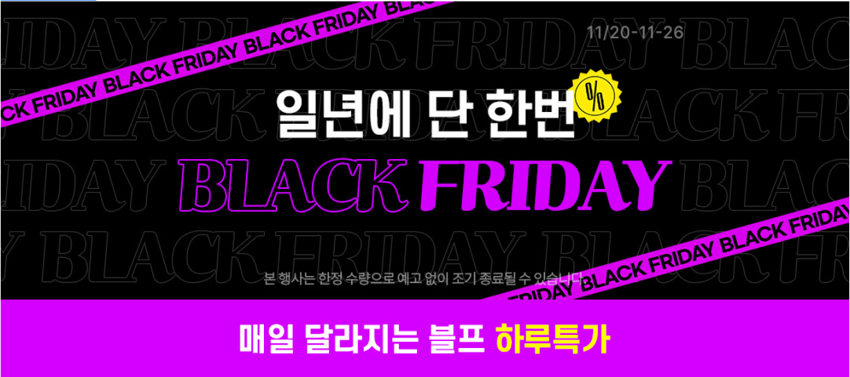 SSG닷컴, 쿠팡, 11번가, 마켓컬리 등의 이커머스사들이 블랙프라이데이를 맞아 해외직구 상품 등을 대규모할인하는 다채로운 행사를 11월 20일부터 11월 말일까지 진행하니 꼭 필요한 제품이 있으시다면 이 기회를 놓치지 마시기 바랍니다.