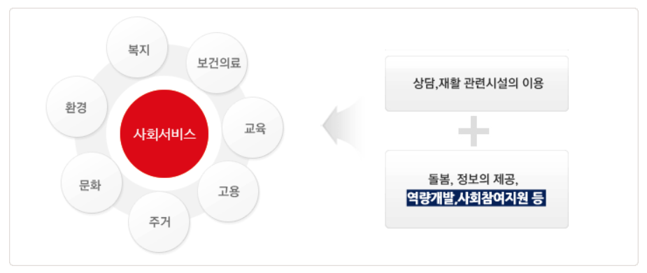 사회서비스란 개인 또는 사회전체의 복지증진 및 삶의 질 향상을 위해 사회적으로 제공되는 서비스로 공공행정 및 사회복지, 보건의료, 교육 및 문화등을 포괄하는 개념으로 세부 사업의 내용은 다음과 같습니다.