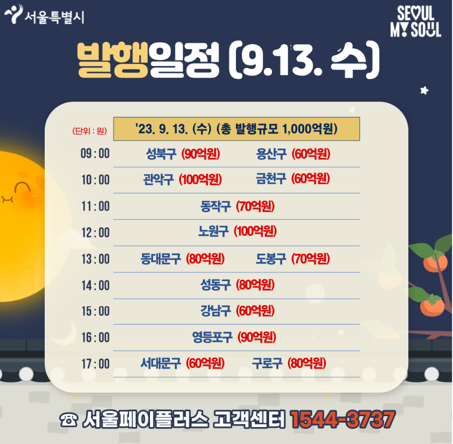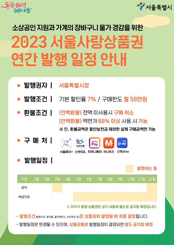 서울사랑상품권 발행일정