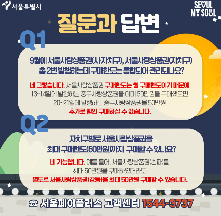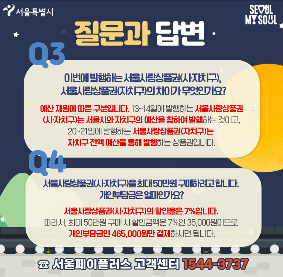 더불어 쇼핑전용 e서울사랑상품권과 법인전용 서울사랑상품권에 대한 내용도 확인하시기 바랍니다.