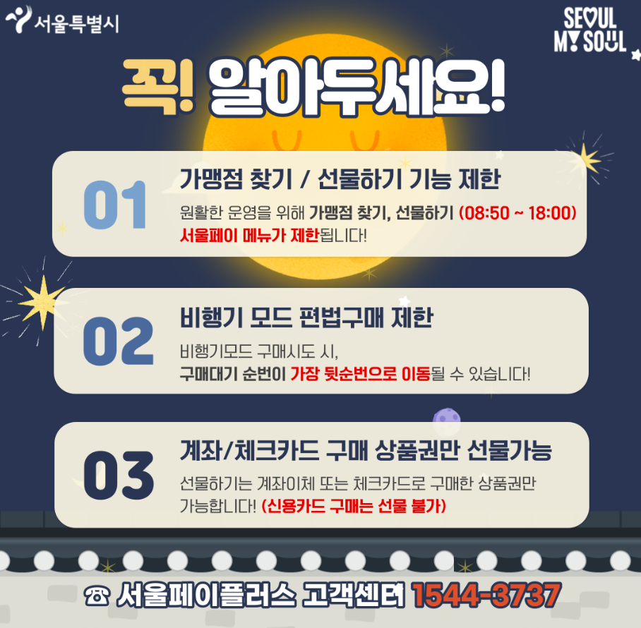 서울사랑상품권과 더불어 온라인 전용관을 통한 쇼핑전용 e서울사랑상품권의 신규 발행이 오늘 오전 10시부터 예정되어 있으며 자세한 사항은 서울페이플러스 고객센터로 문의하시면 됩니다. e