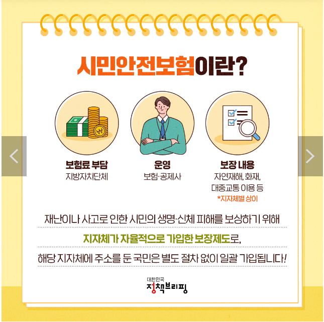 다음에서는 시민안전보험의 개요와 시민안전보험금의 보상사례와 청구방법, 각 지자체별 시민안전보험 가입여부 확인방법에 대해 자세히 알아보겠습니다.
