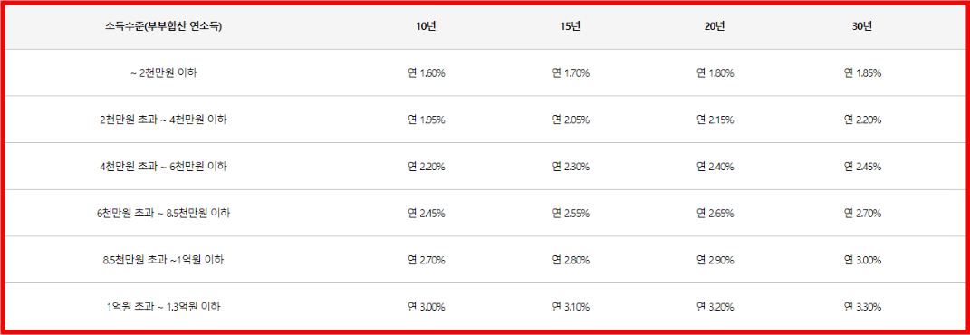 ▶ 추가 출산 혜택 : 1자녀 당 금리 0.2% 인하 및 특례 기간 5년 연장