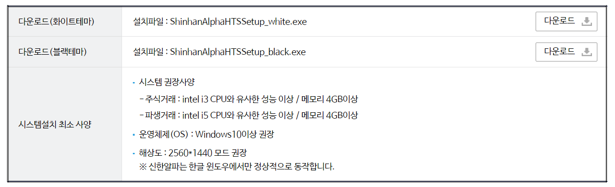 신한알파의 컴퓨터 설치는 아래 사진에서 다운로드 가능합니다.