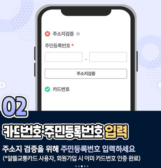 ② 주소지 검증을 위한 주민등록번호 및 카드번호를 입력합니다.