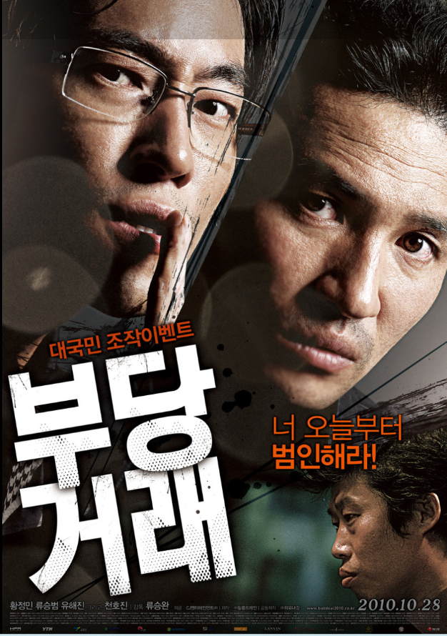 영화 < 부당 거래 >는 범죄, 스릴러, 액션 영화로 2010년 10월에 개봉한 류승완 감독의 7번째 영화로, 검사와 경찰, 스폰서 조폭유착, 여론을 조작하는 언론기관, 경찰과 검찰의 힘 겨루기 등 사회의 만연한 부조리를 주제로 다룬 영화입니다. 다음에서는 이 영화의 등장인물과 줄거리, 그리고 리뷰에 대해 알아보겠습니다.