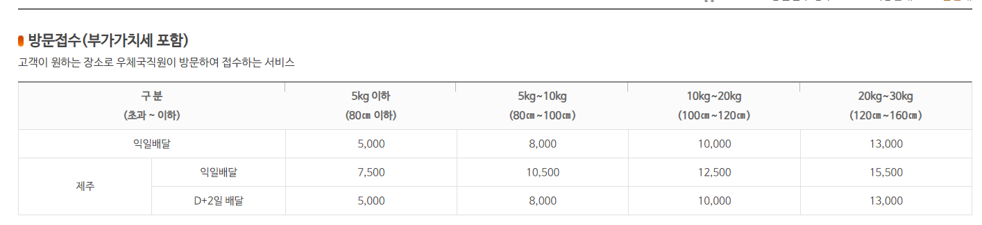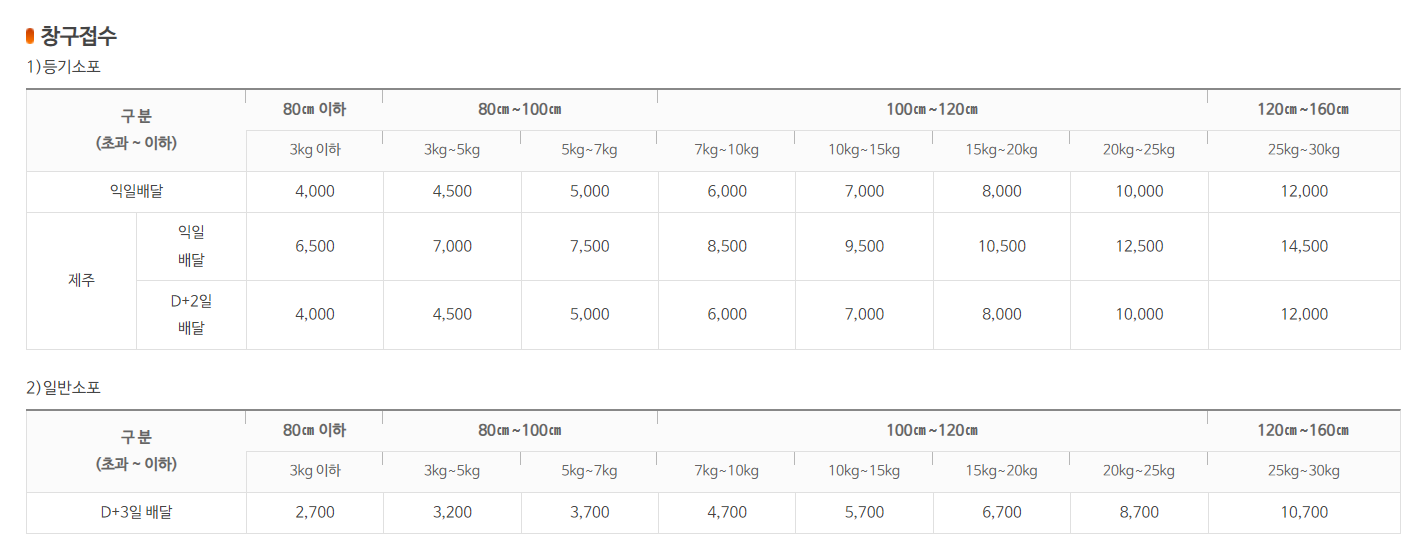 택배요금은 방문접수 요금과 창구접수 요금이 있으며 창구접수 요금이 약간 저렴하니 참고하시기 바랍니다.