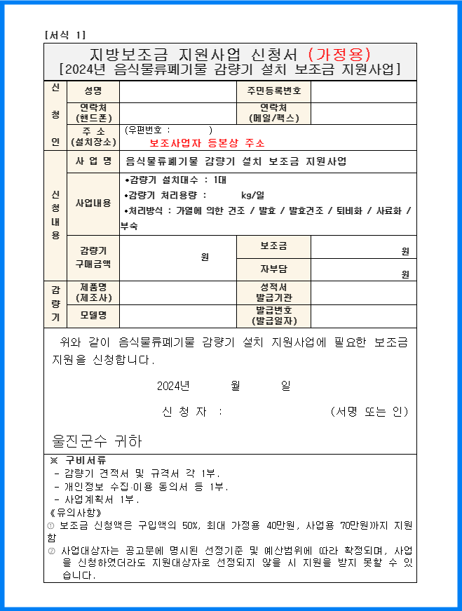 1. 음식물 처리기 지원 신청방법(울진군)