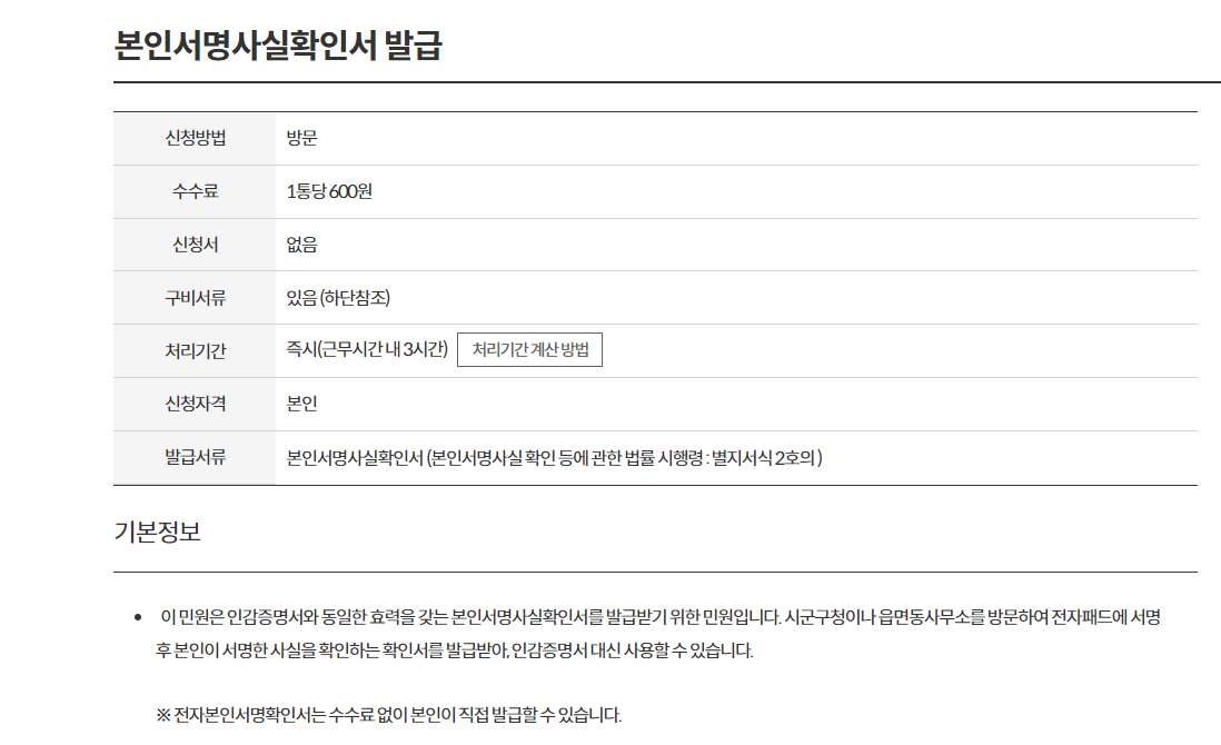 정부 24 인터넷 사이트에서 인감증명서와 같은 효력을 가진 전자본인서명확인서에 대한 내용도 참고하시기 바랍니다.