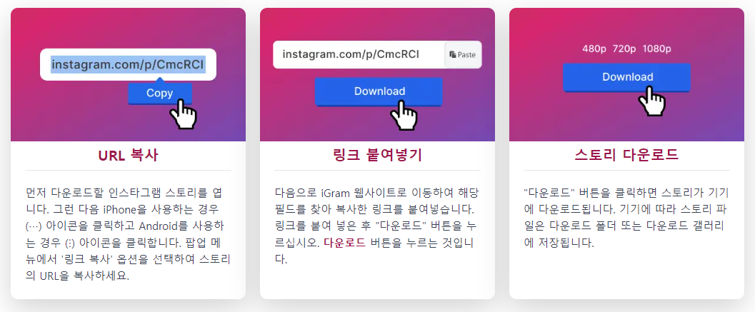 ③ 클릭 한 번으로 모든 Instagram STORY를 고품질로 다운로드 및 보관할 수 있습니다.