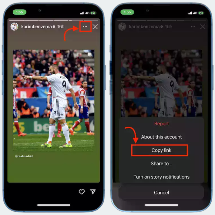 ▶ 인스타그램 앱 저장 방법 : 모바일 다운로드는 스토리를 연 다음 스토리의 우측 상단의 점 3개를 클릭한 후 링크를 복사하면 클립보드에 저장 됩니다.