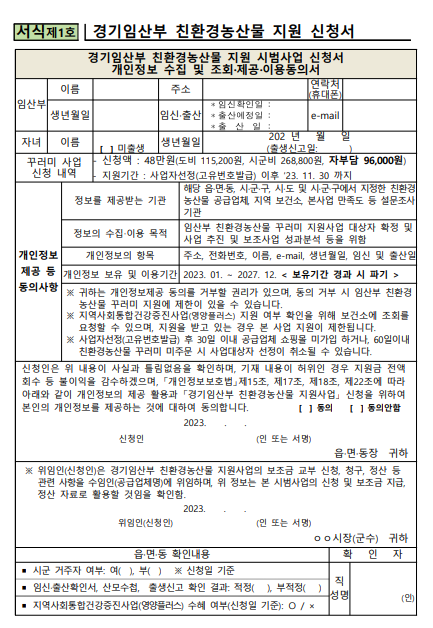 다음에서는 친환경 농산물을 통해 생태환경보전과 친환경농업을 실천하는 농부들에 힘이 되는 임산부 친환경 농산물꾸러미 사업의 정의와 지원대상 및 지원기간, 지원내용 및 시범 사업지역, 신청 절차에 대해 자세히 알아보겠습니다.