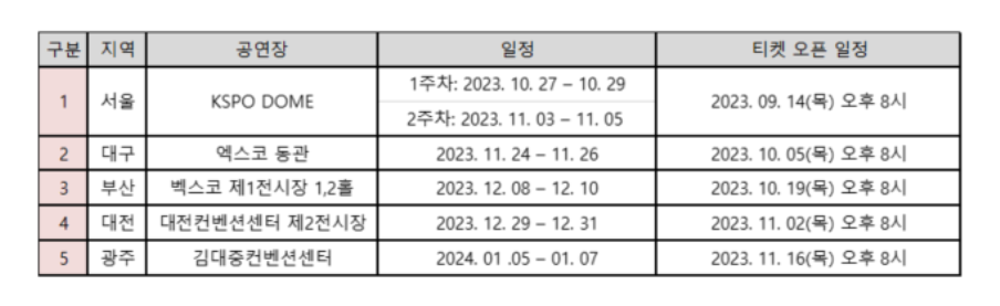 ▶ 티켓 예매 일정 : 2023년 10월 05일(목) 오후 8시