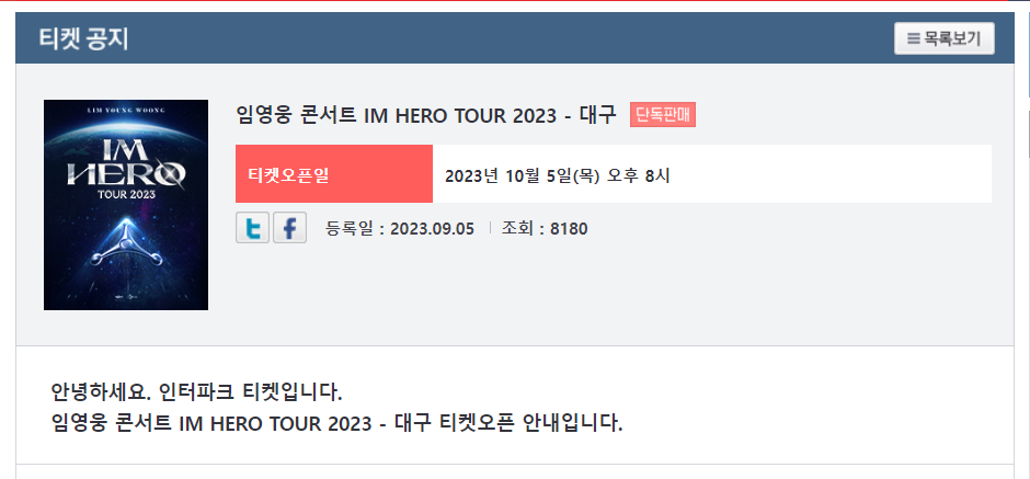 임영웅 콘서트 IM HERO TOUR 2023 서울에 이어 대구 공연에 대한 티켓예매 정보를 영웅사랑 회원님들과 공유합니다.