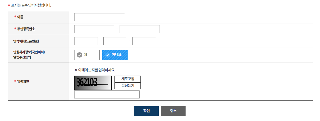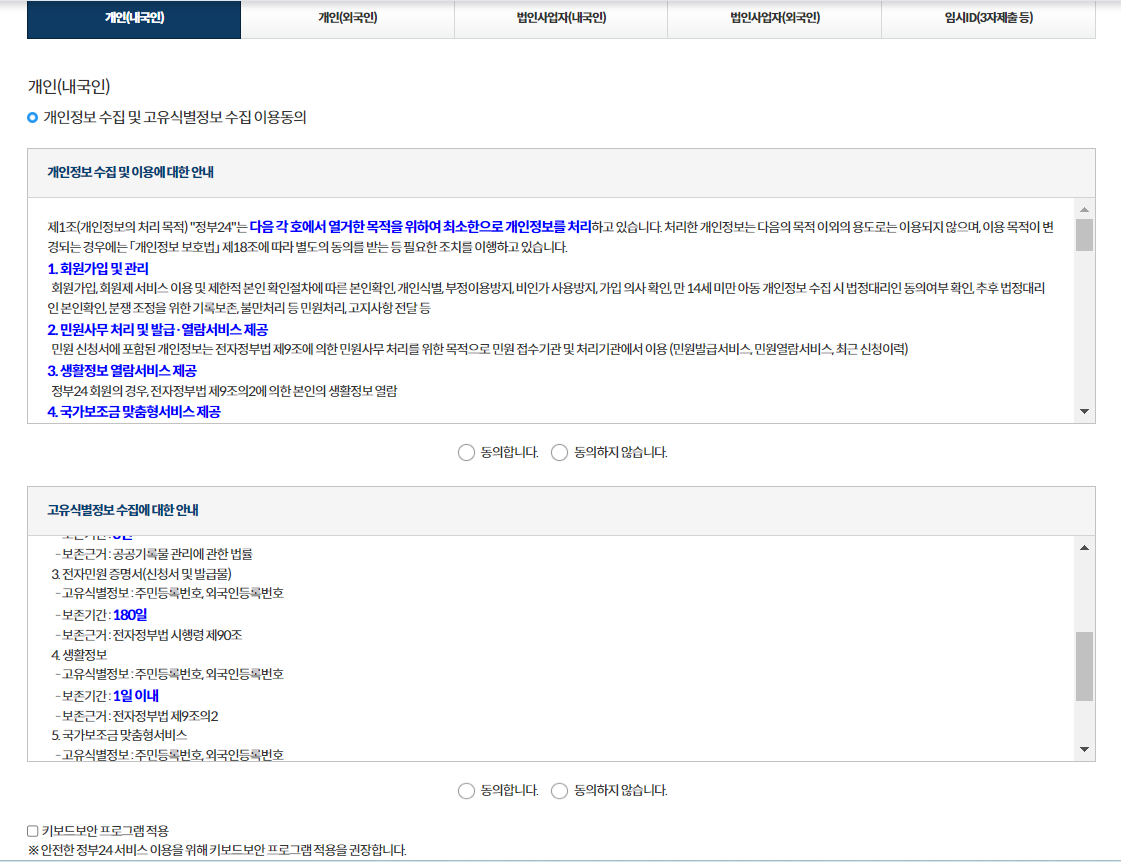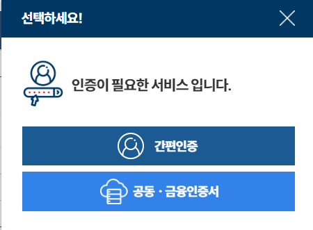 ① 신청은 회원/비회원 신청이 가능하지만 간편 인증 또는 인증서가 별도로 있어야 합니다.