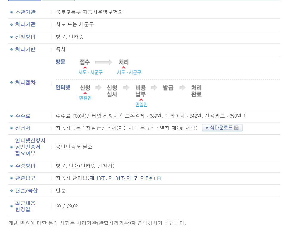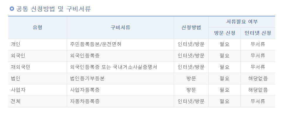 참고로 법인의 자동차등록증 재발급은 가까운 등록관청을 방문하여야 합니다.
