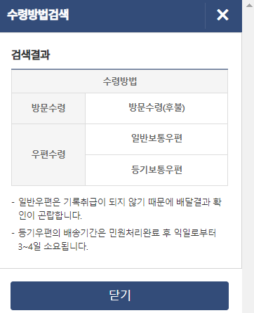 ⑤ 재발급 신청한 자동차 등록증의 수령방법을 선택합니다.