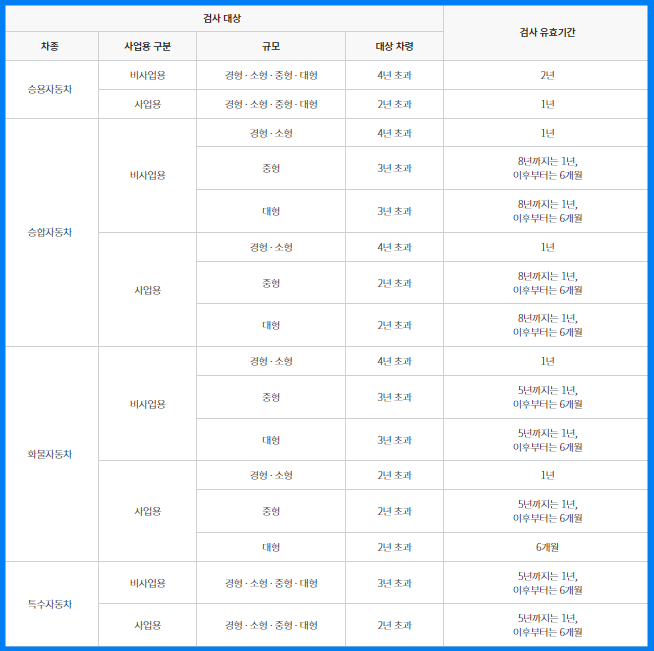 자동차 종합검사 대상 및 검사 유효기간