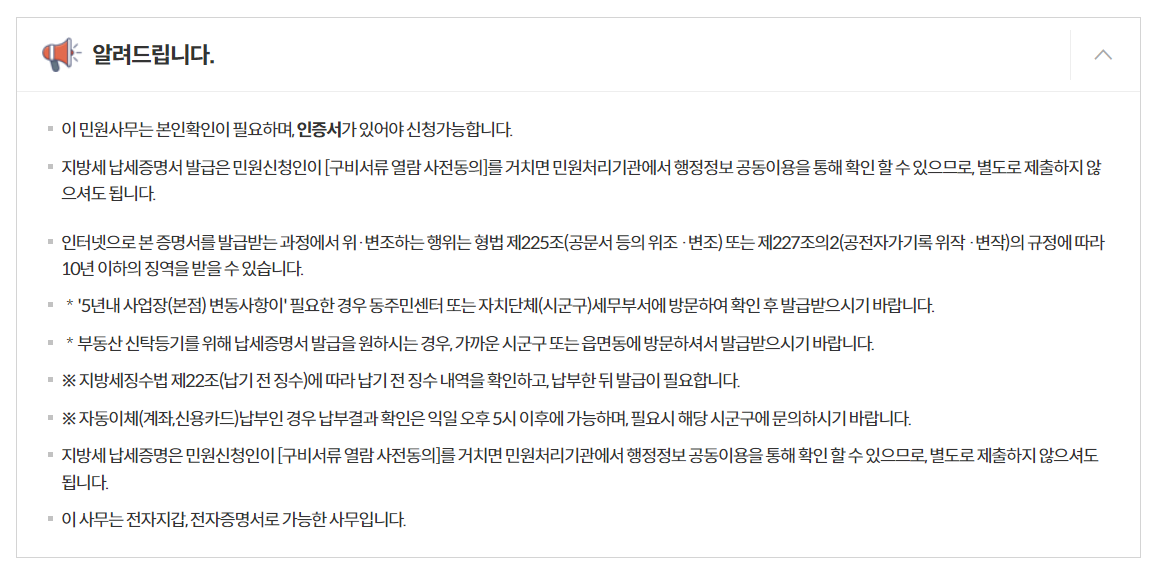 지방세 납세증명서 발급하기