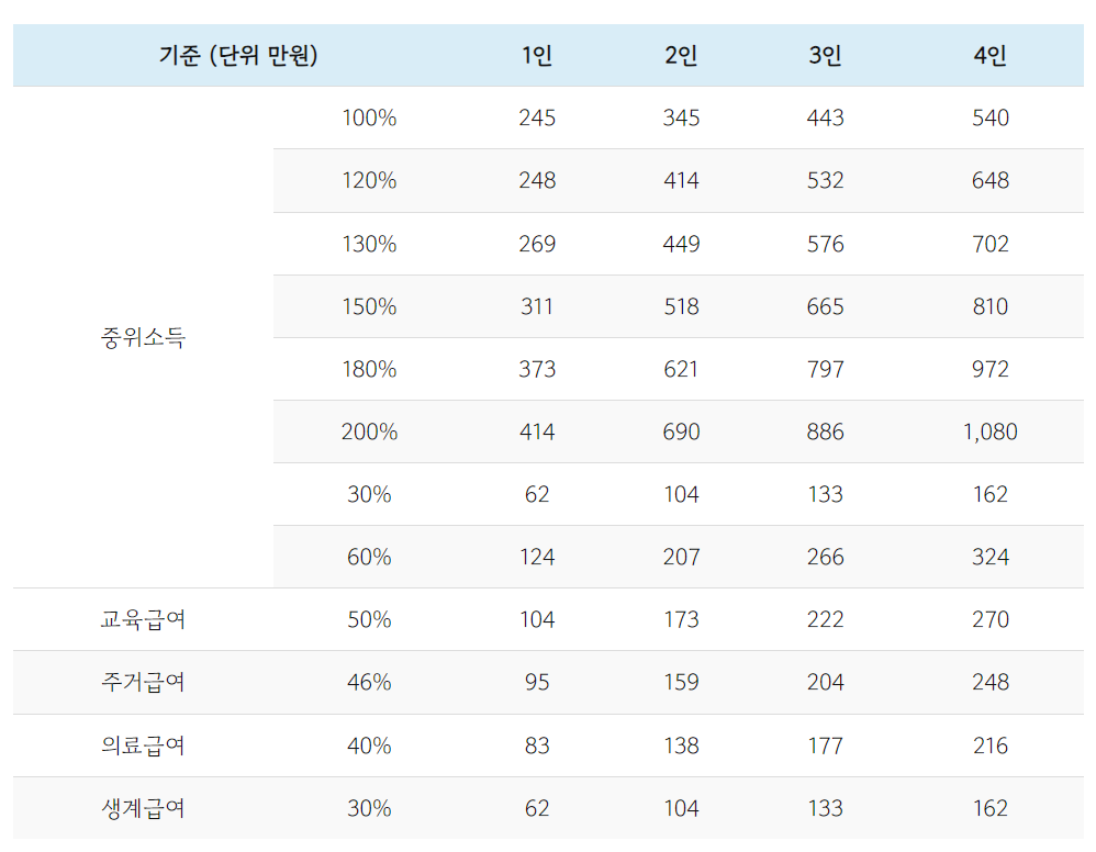 나의 중위소득 알아보기☞