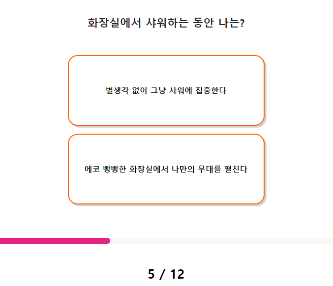 5. 화장실에서 샤워하는 동안 나는?