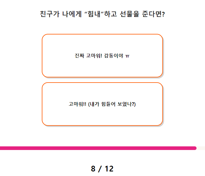 8. 친구가 나에게 "힘내"하고 선물을 준다면?