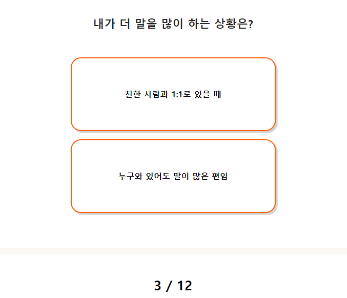 성격 피라미드 테스트는 총 12문항으로 구성되어 있습니다.