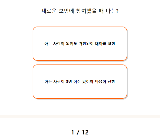 두 번째 문항에서도 저의 내성적인 성격이 여실히 증명되는 순간입니다.