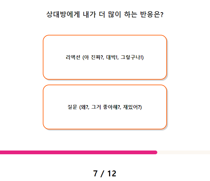 7. 상대방에게 내가 더 많이 하는 반응은?